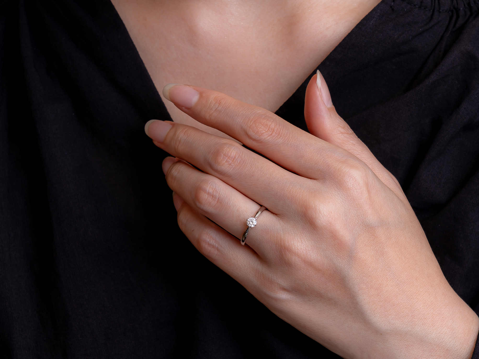 つや有りとつや消し、ふたつの表情から選べる、凛とした気品を宿す婚約指輪です。