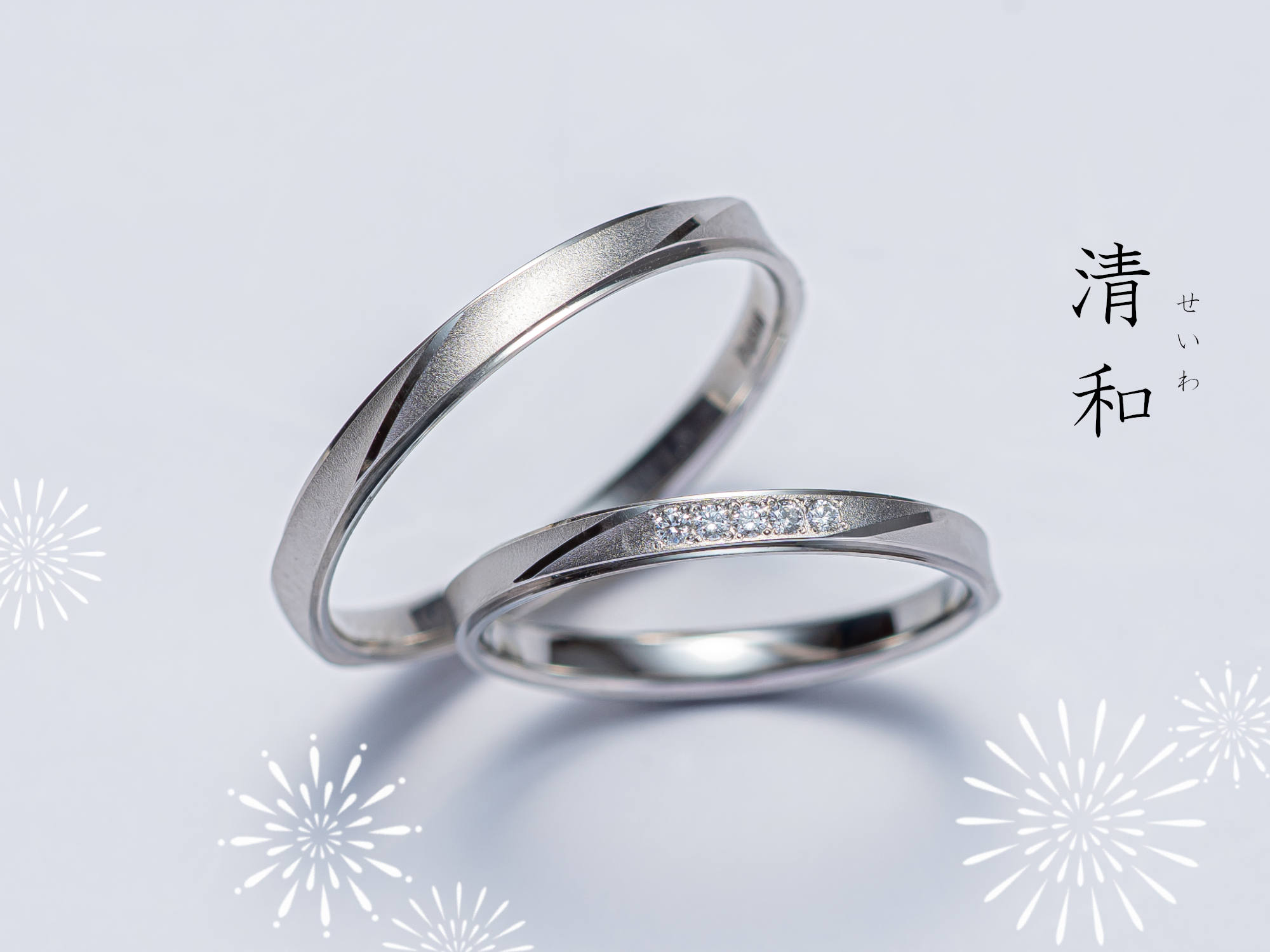 ふたりで過ごす季節の移ろい、ふたりで見つめる美しい日本の四季の姿をモチーフにデザインされた【雪月花】のブライダルリング。さりげない日々の変化にも彩りを感じ、細やかな喜びに幸せを感じられる日常を。