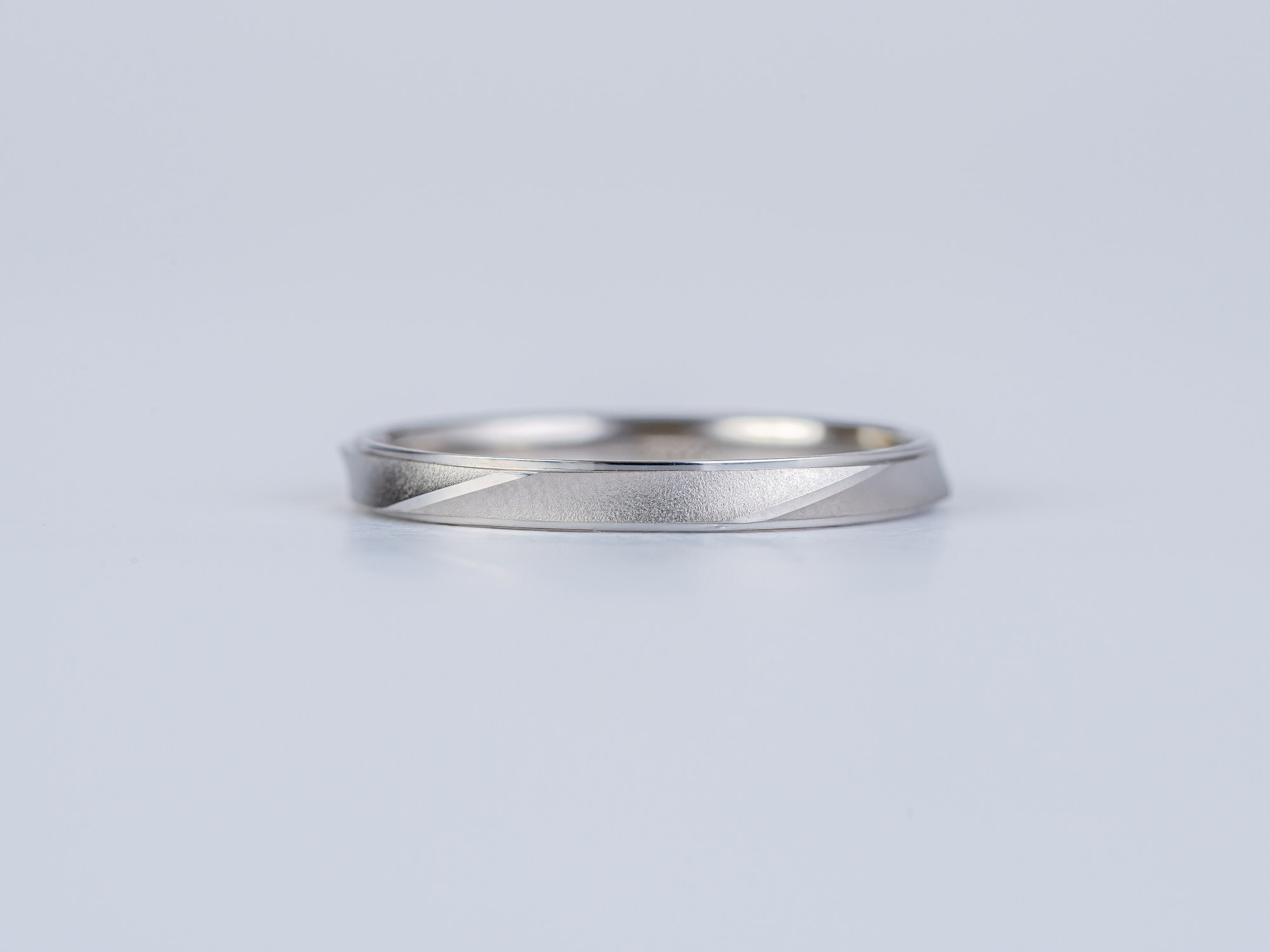 「雪月花」の結婚指輪は、鍛造製法で1本1本丹念に作られています。つや消しやカッティングを取り入れたシャープなデザインで、「わび・さび」を感じる機能美が魅力的なブランドです。