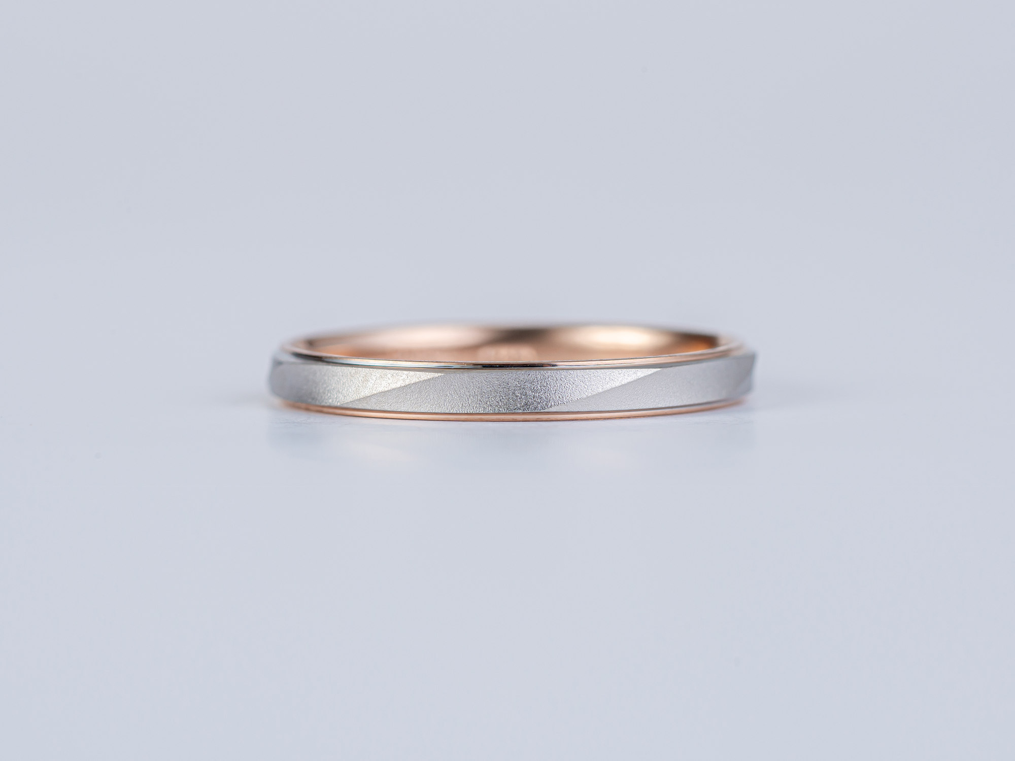 「雪月花」のブライダルリングは≪鍛造≫という製法で作られています。鍛造は金属を鍛えて硬度を増すことから、変形に強いという特徴があります。また、精密機械での削り出しの工程で、一般的なジュエリーの製法である≪鋳造≫では生み出せない、美しいエッジやシャープなラインを表現することが出来ます。